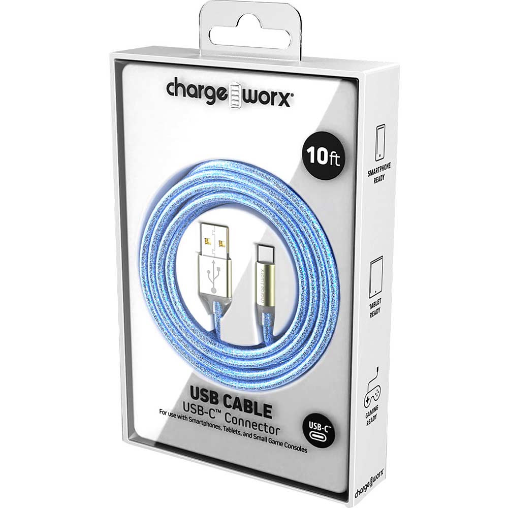 "GlowSync" 10 FT UCB-C Cable, Light Blue