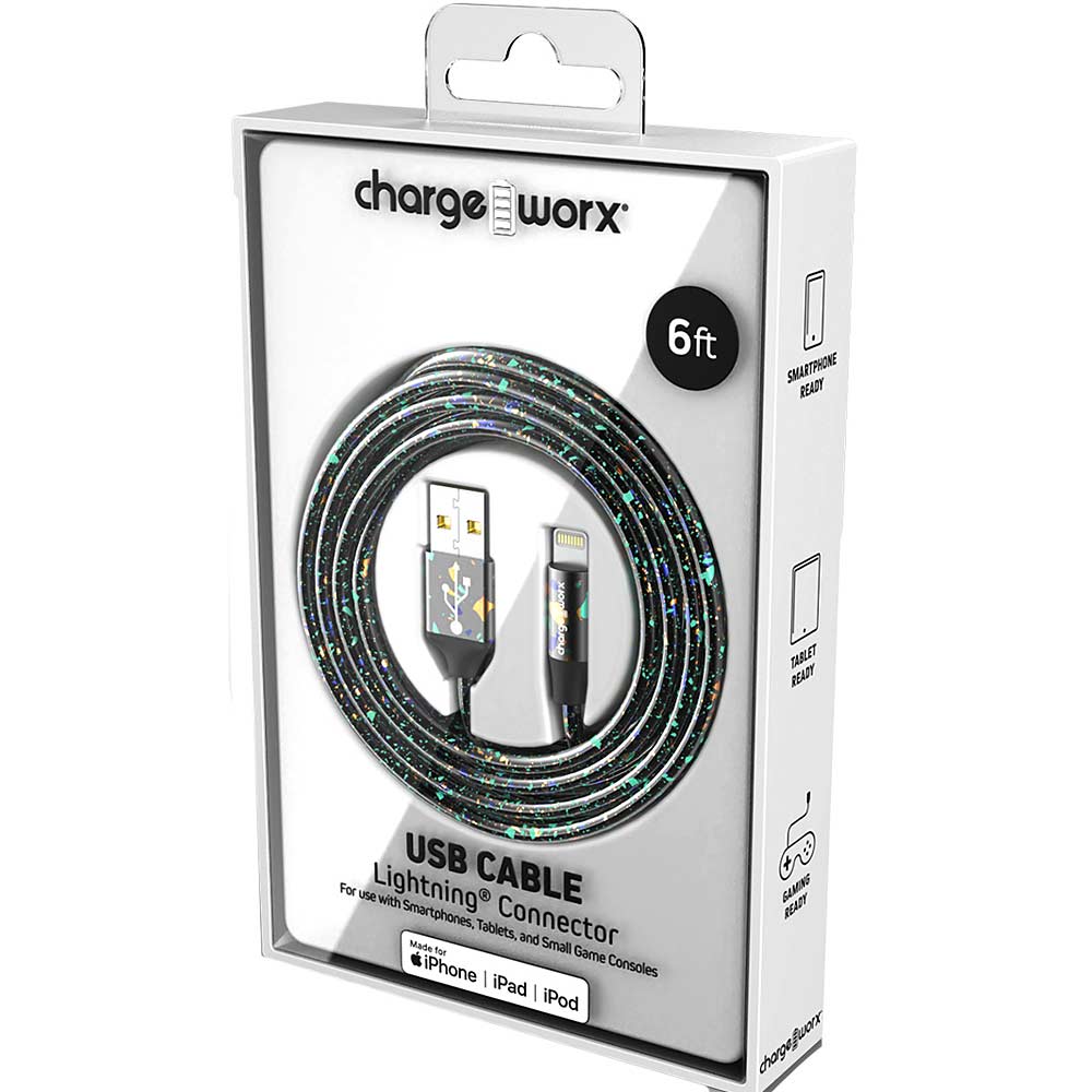 "PearlEssence" 6 FT Lightning Cable, Black VendorChargeworx Share WhatsApp Deel X Pin it Messenger Email Product form In stock SKU: CHA-CX1340BK Barcode: 643620030479 Charge from any USB Port Stylish, durable, innovative design Tangle & scuff resistant Length 6ft / 1.8m Pairs well with