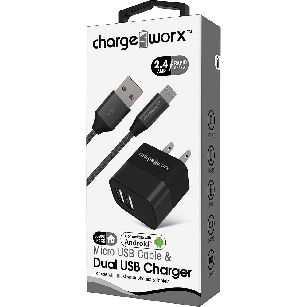 2.4A Dual USB Metal Wall Charger & 3ft Micro USB Cable, Black