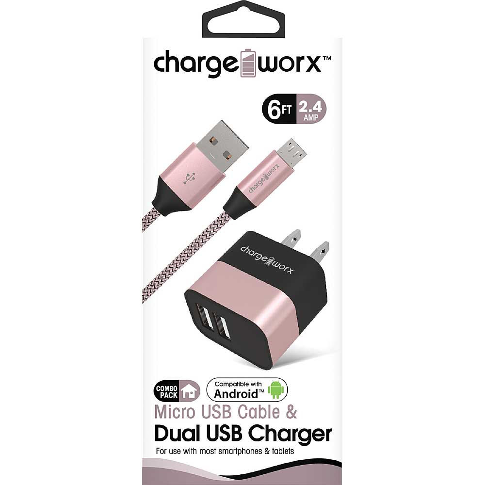 2.4A Dual USB Metal Wall Charger & 6ft Micro USB Cable, Rose Gold