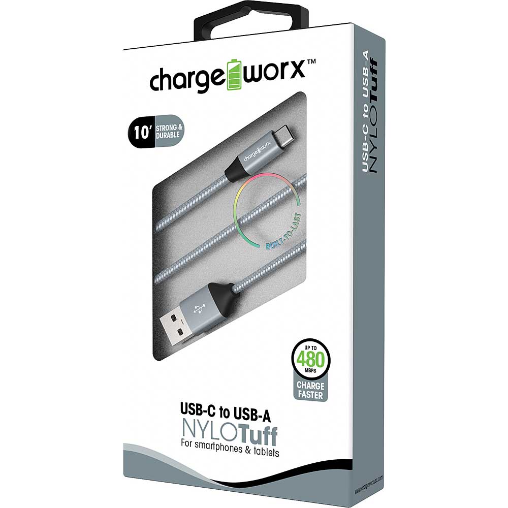 10ft USB-C to USB-A NYLOTuff Cable, Silver