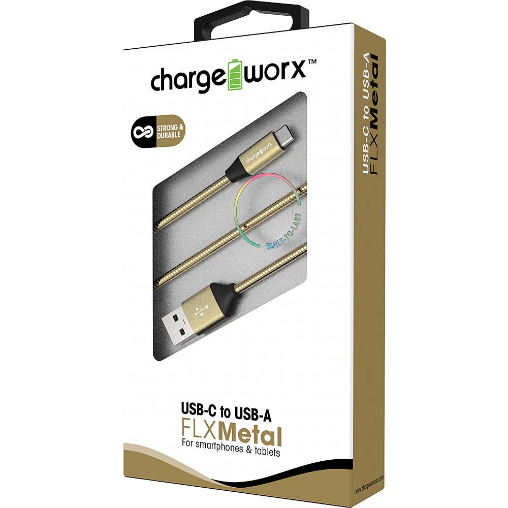 3ft USB-C to USB-A FLXMetal Cable, Gold