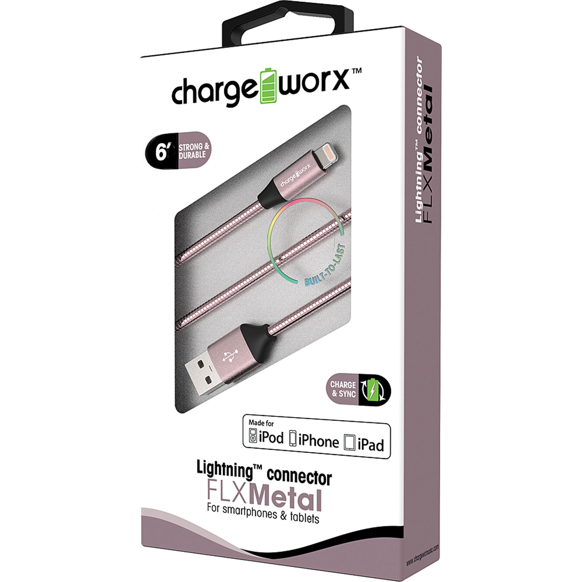 "FLX" Metal 6ft Lightning Sync & Charge Cable, Rose Gold