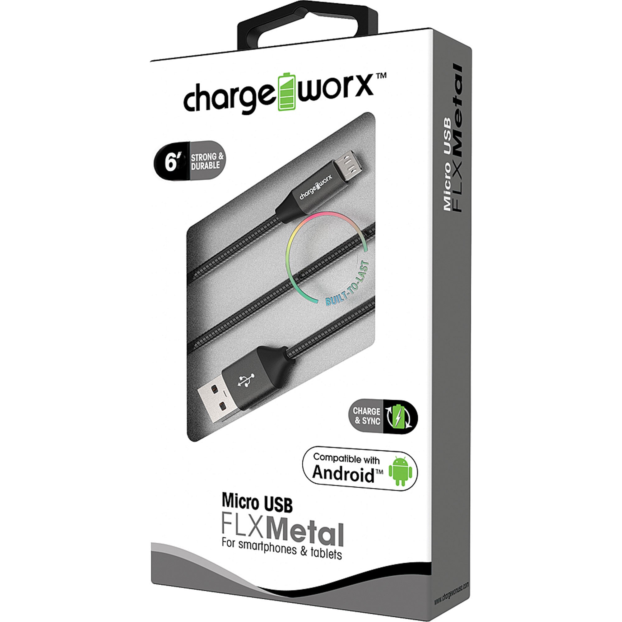 "FLX" Metal 6ft Micro USB Sync & Charge Cable, Black