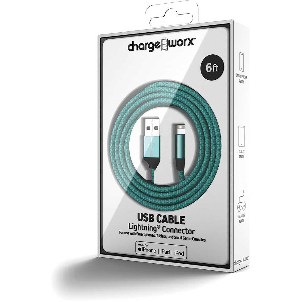 6 FT Lightning Cable, Teal VendorChargeworx Share WhatsApp Deel X Pin it Messenger Email Product form In stock SKU: CHA-CX4858TL Barcode: 643620016787 Charge from Any USB Port Tangle & Scuff Resistant Stylish, Durable, innovative Design 6 ft/ 1.8m Pairs well with