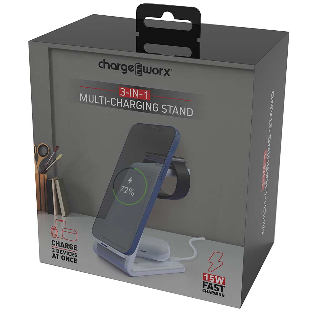 - Charge 3 Devices at Once: Smartphone, WirelessEarbuds, Smartwatch