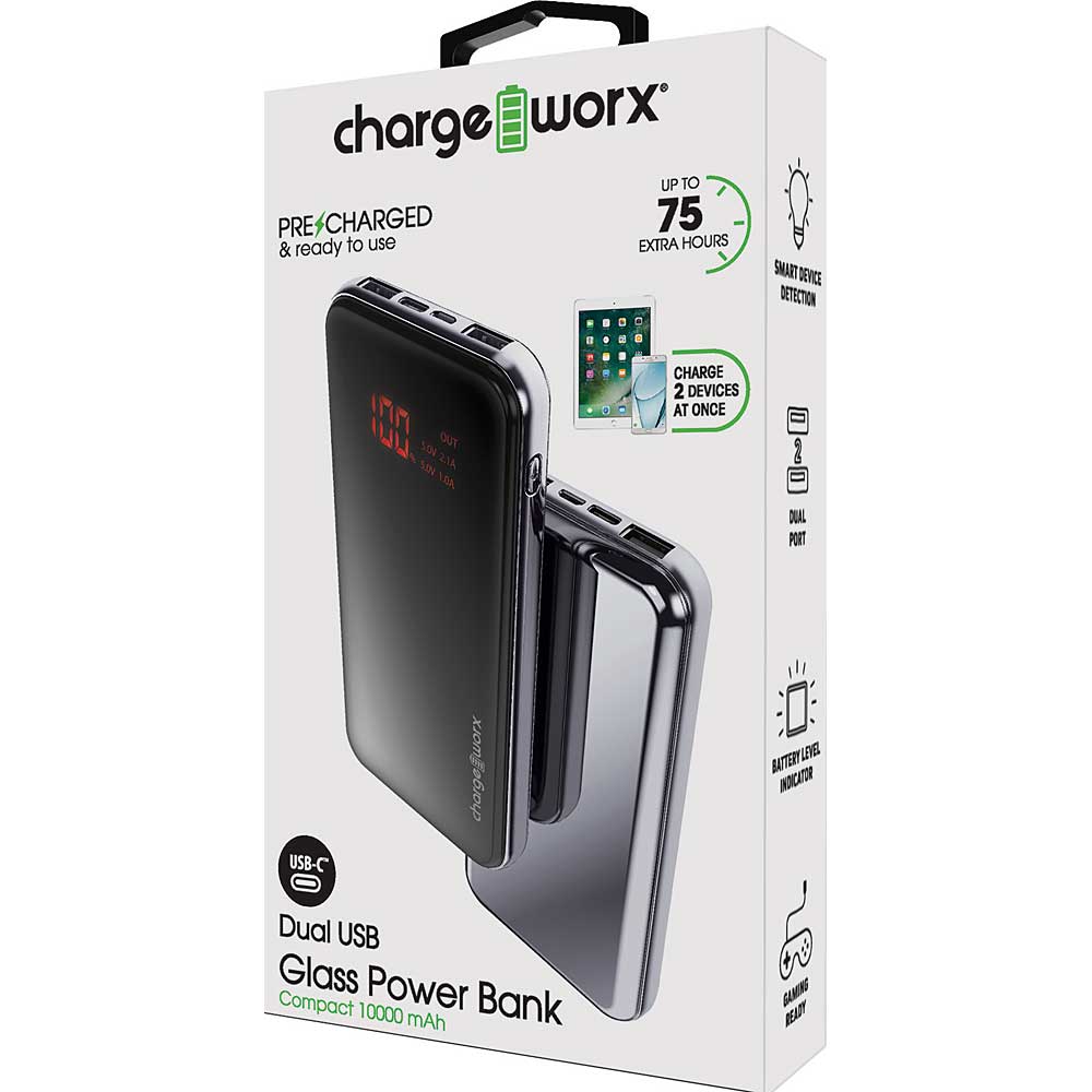 10000mAh Dual USB Glass Power Bank