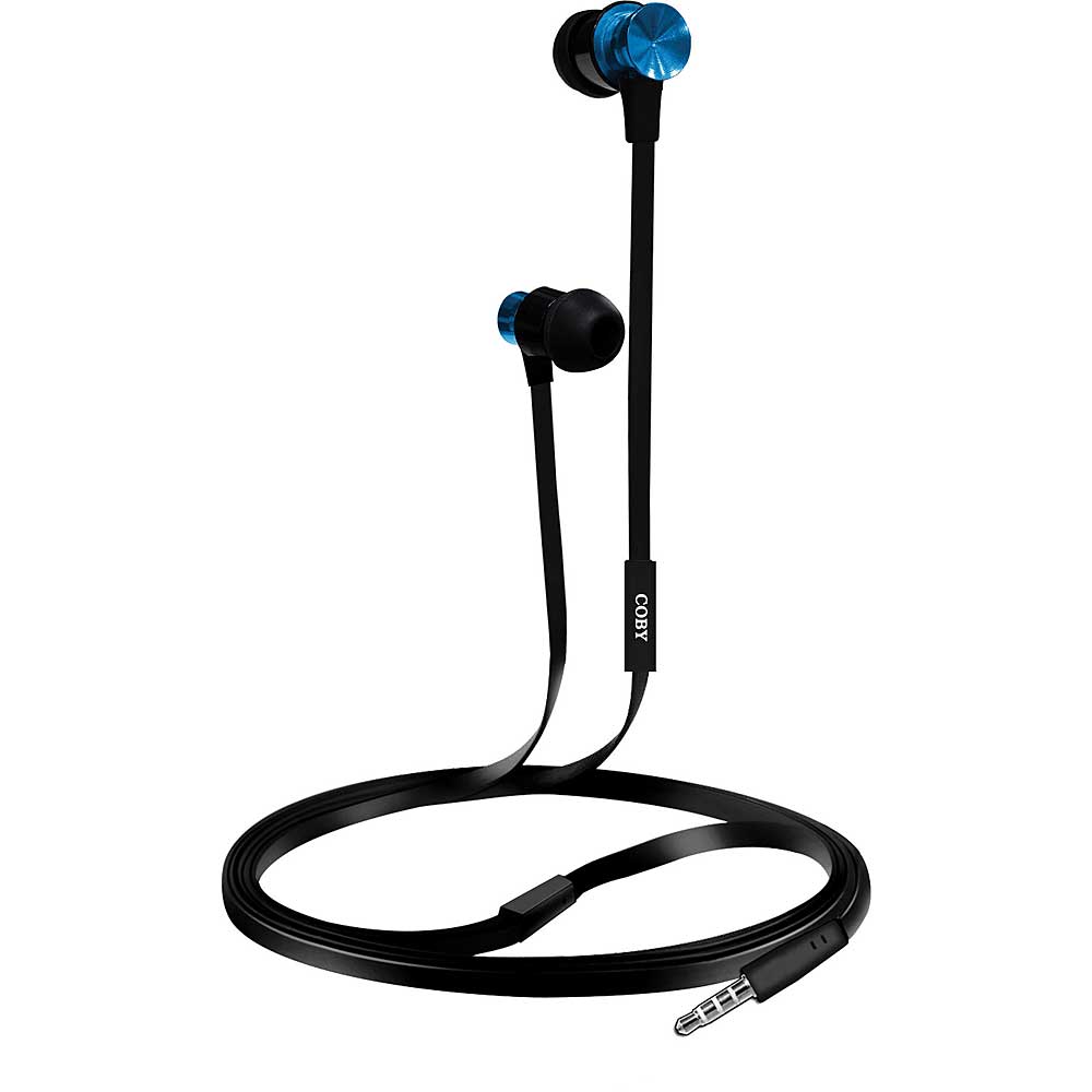 Aluminum Tangle-Eree Stereo Earbuds w/Mic, Blue