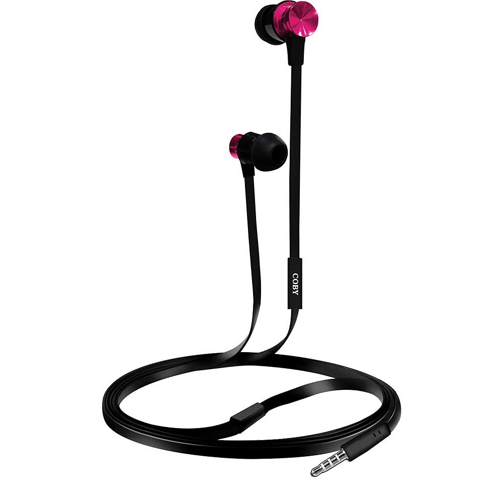 Aluminum Tangle-Eree Stereo Earbuds w/Mic, Pink