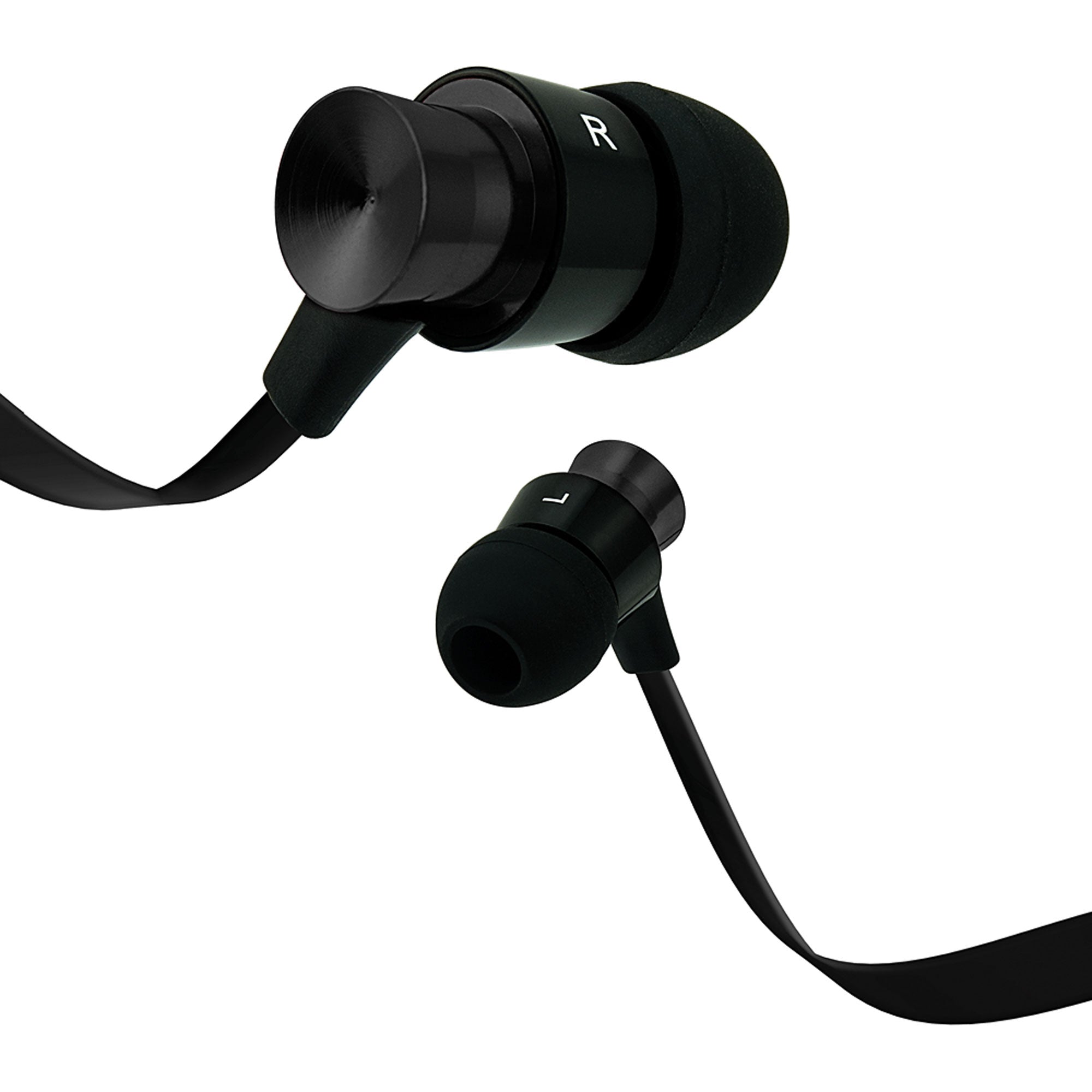 Aluminum Tangle Free Stereo Earbuds w/Mic, Black