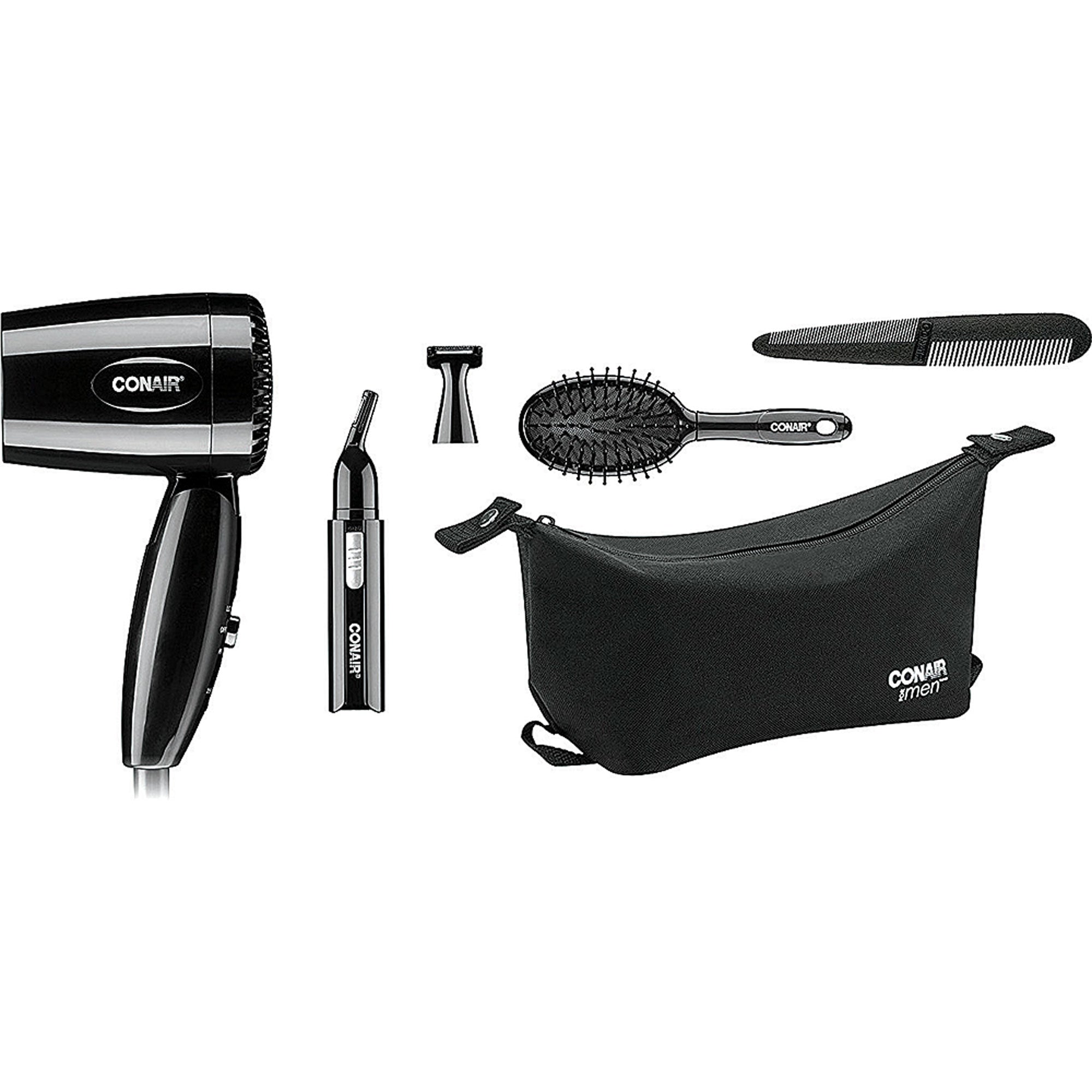 - Men's full size deluxe travel bag with styling brush and styling comb