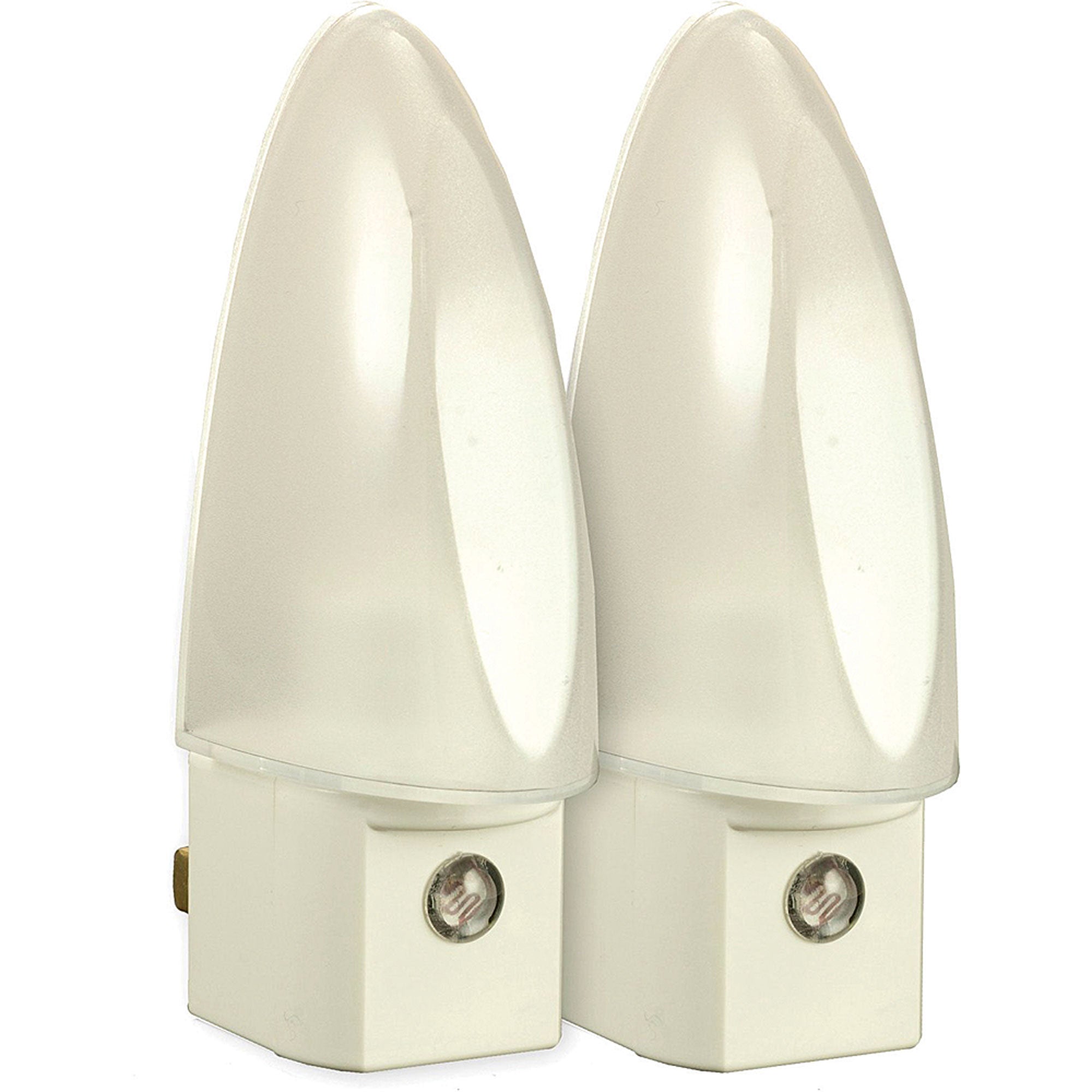 Auto LED Night Light, White Plastic Base with Shade, 2 Pack