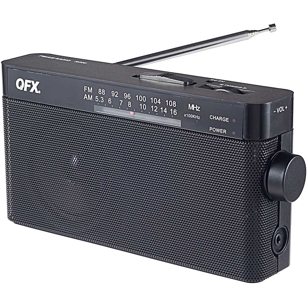 AM/FM Rechargeable Tabletop Radio VendorQFX Share WhatsApp Deel X Pin it Messenger Email Product form Out of stock SKU: QFX-R200 Barcode: 606540036938 LED Power indicator Built-in Speaker Telescopic Antenna Headphone Jack Carrying Handle 2 AA Batteries Batteries not included Pairs well with