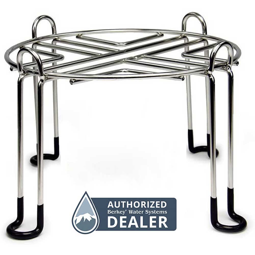 The Berkey Stand adds style and functionality to your water filter setup. The rubberized feet are made of a non-marking, non-marring rubber that is bonded to the stand for extra durability and stability. These polished stainless steel stands are 6" tall allowing you to easily fit a cup or mug beneath the spigot.