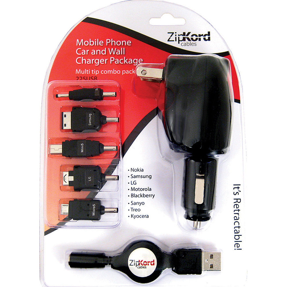 225USB Multi-Tip Retractable Car/Wall/PC Combo Charger Pack